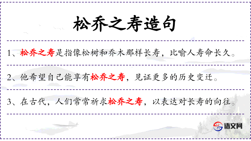 2. 【松乔之寿】 - 松、乔:古代传说中的仙人赤松子和王乔。指像仙人那样的长寿。