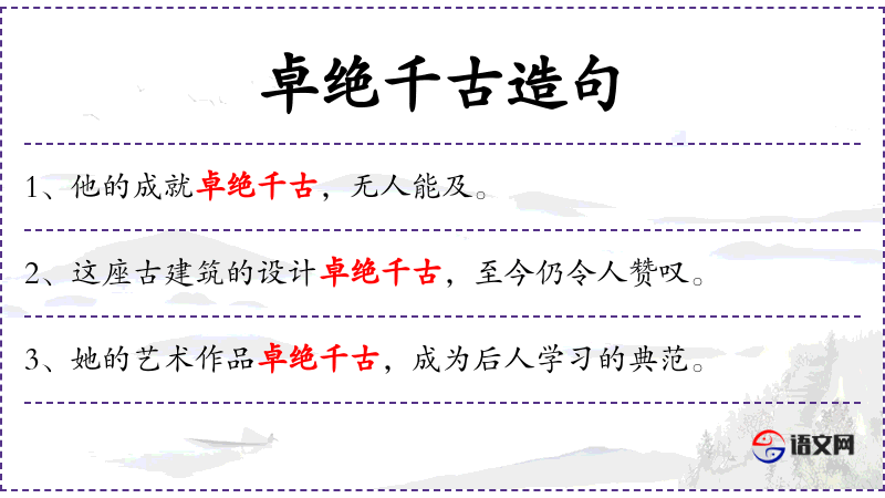 - 卓绝千古:形容非常卓越,超越了时间的限制,流传千古。