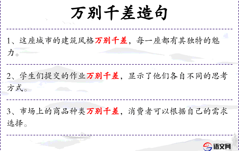 - 万别千差:形容差异极大,多种多样。