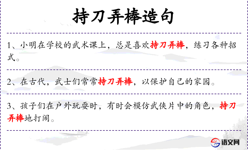 2. 【持刀弄棒】 形容喜爱习武。