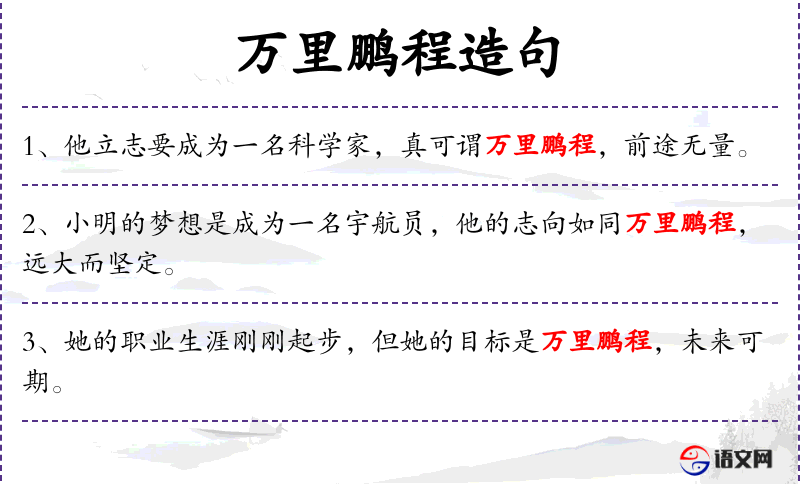 - 成语典故:“万里鹏程”出自《庄子·逍遥游》,比喻志向远大,前程无量。