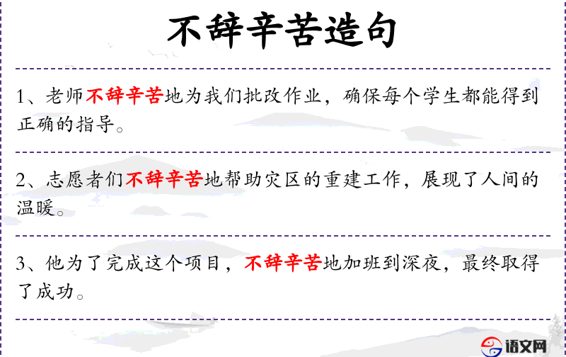 - 不辞辛苦:形容不计较劳累,愿意付出努力。