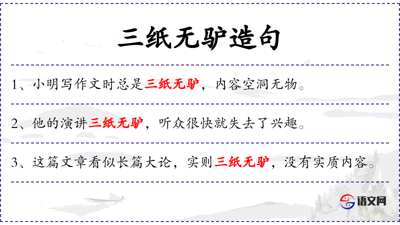 1. 【三纸无驴】 形容写文章废话连篇不得要领