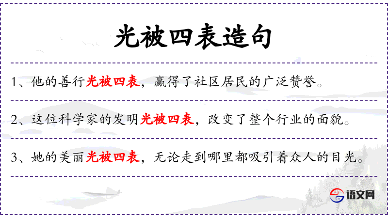 - 光被四表:这个成语源自**传统文化,强调了善行被广泛认可和传扬的意义。