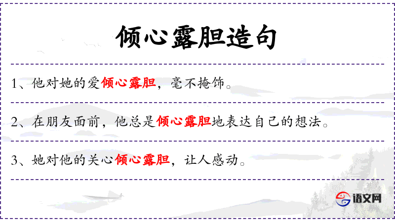 - 倾心露胆:形容非常真诚、坦率地表达自己的想法或感受。