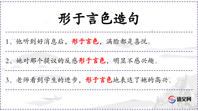 - 形于言色:通过言语和表情表现出来