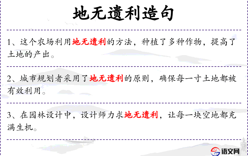 - 地无遗利地:副词,表示彻底、全面。