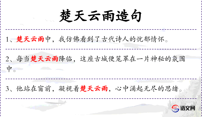 1. 【楚天云雨】 指巫山神女,或男女欢情。