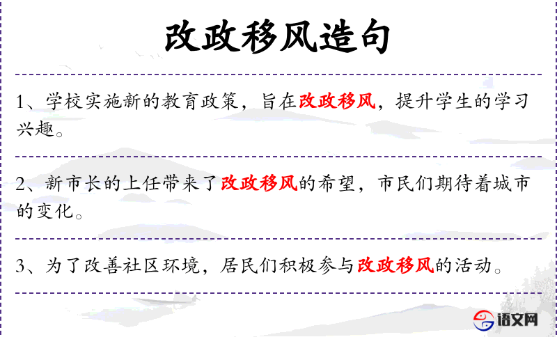 “改政移风”可能蕴含着企业文化变革的意义,这在企业管理中是一个常见的主题。了解相关的成语和典故可以帮助更深入地理解句子的文化背景。