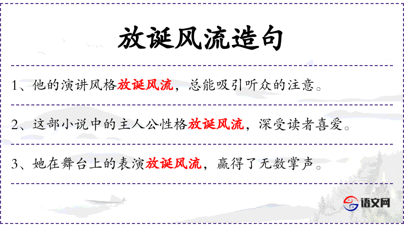 - 放诞风流:这一词汇蕴含了**传统文化中对文人墨客风流倜傥形象的赞美。