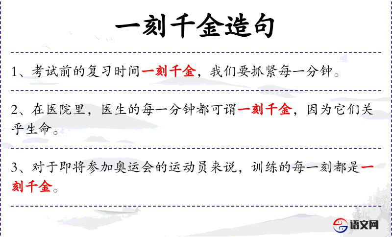 1. 【一刻千金】 一刻时光,价值千金。形容时间非常宝贵。