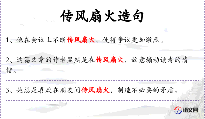 - 宾语:传风扇火、听众的热情