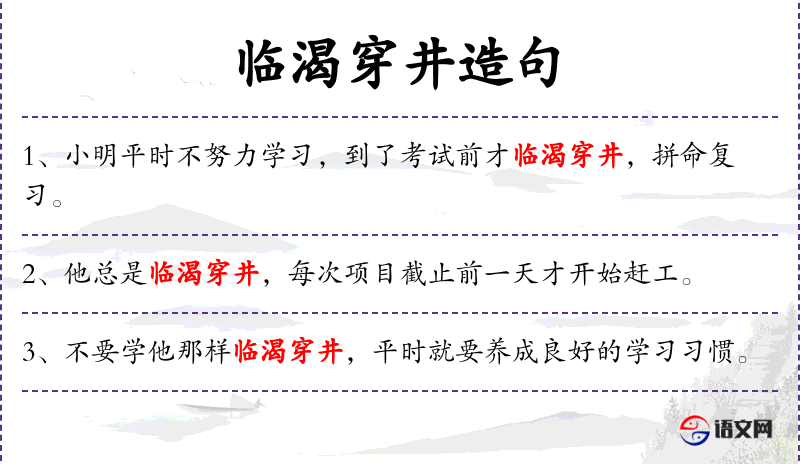 - 临渴穿井:这个成语源自古代,反映了人对于及时准备和预防的重视。