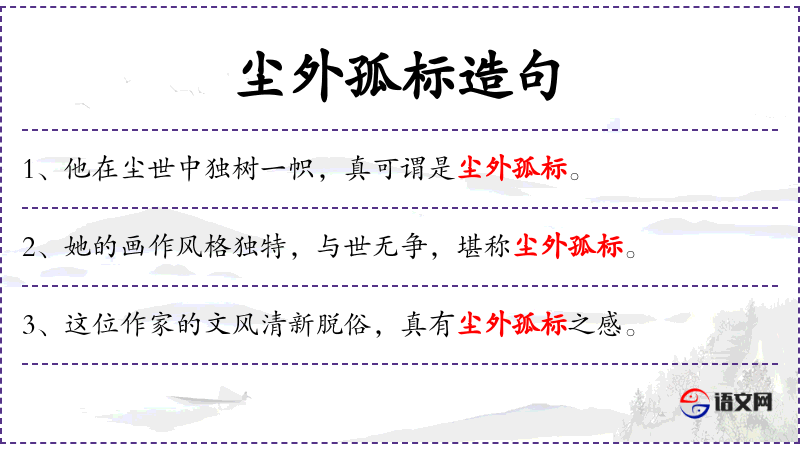 - 尘外孤标:这个表达强调了超脱世俗,独具一格的艺术追求。