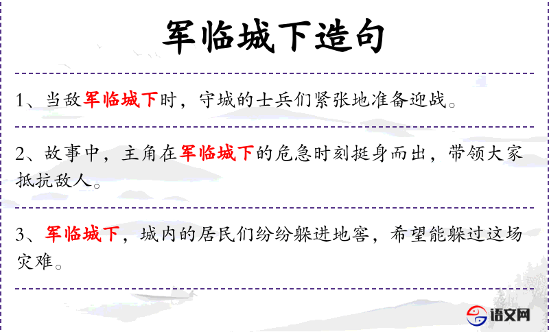 - 状语:面对军临城下的威胁、紧急