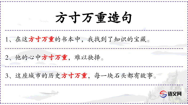 - 谓语:“方寸万重”,形容内心的复杂和沉重。