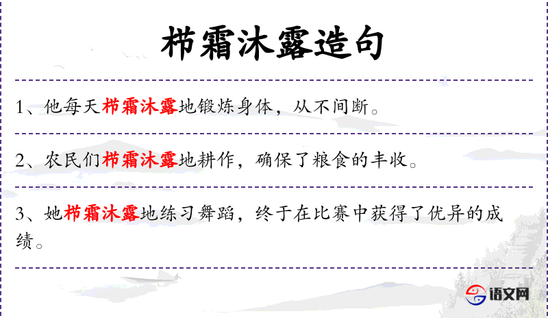 4. 【栉霜沐露】 - 迎着霜,顶着露。形容奔波劳苦。