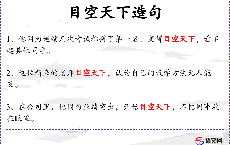 2. 【目空天下】 - 比喻目中无人、狂妄或自负之甚。