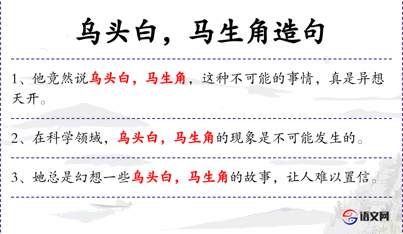 - “乌头白,马生角”是**传统文化中的成语,用来形容不可能的事情。