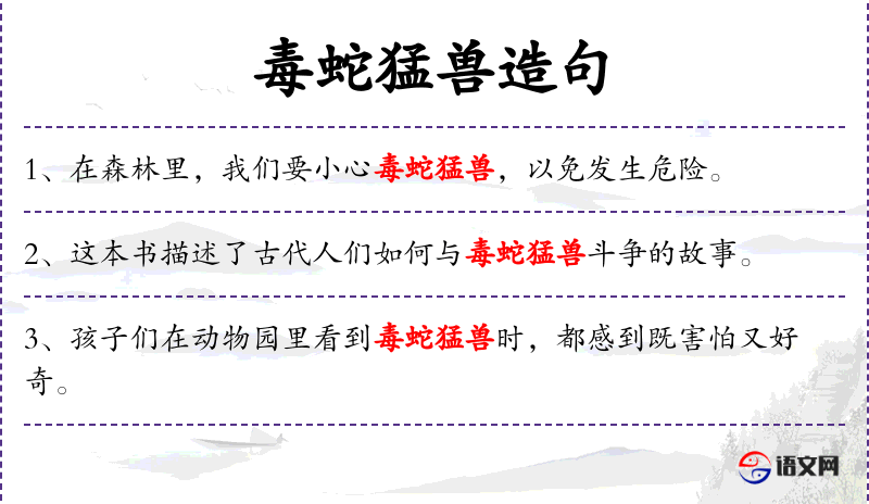 4. 【毒蛇猛兽】 - 泛指对人类生命有威胁的动物。比喻贪暴者。