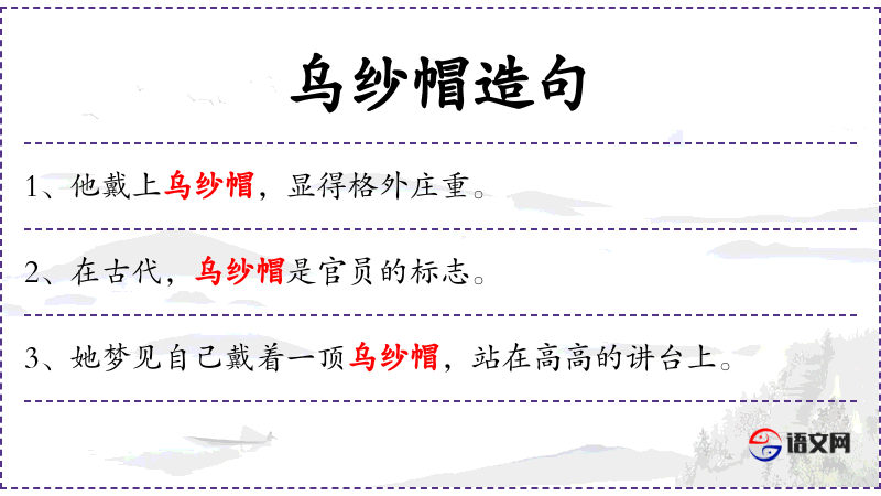 - 乌纱帽:一种传统的帽子,通常与官员或权威人士相关联。