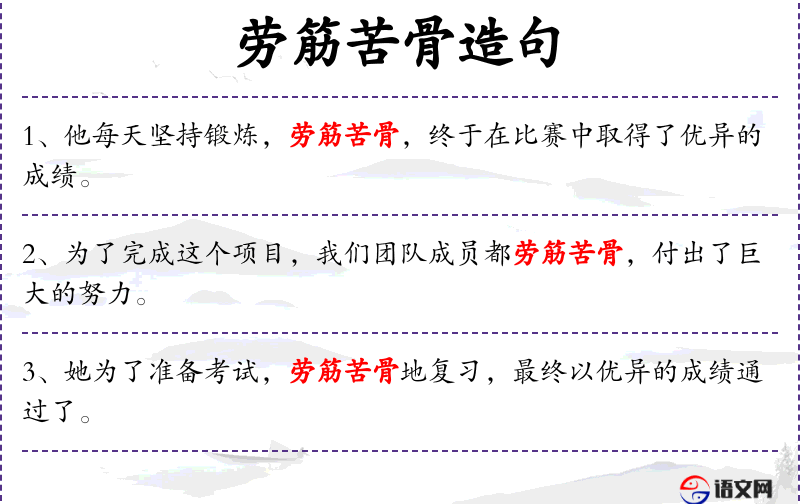 “劳筋苦骨”这个成语源自**古代,形容工作非常辛苦。在现代汉语中,这个成语仍然被广泛使用,尤其是在描述团队或个人为了达成某个目标而付出的努力时。