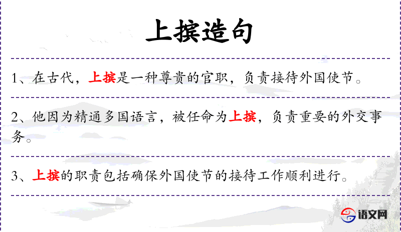 2. 【上摈】 代表君主接待贵宾的高级司仪。由主国政之卿充任。