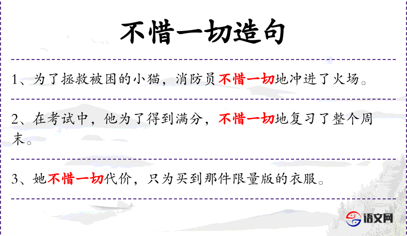 1. 【不惜一切】 - 为了达到目的不吝惜所花费的代价。