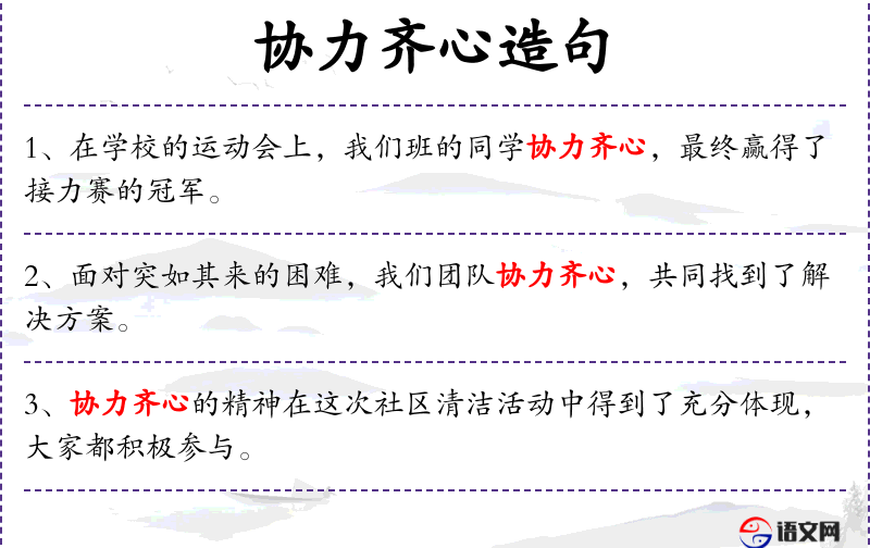 - 协力齐心:表示共同努力,团结一致。