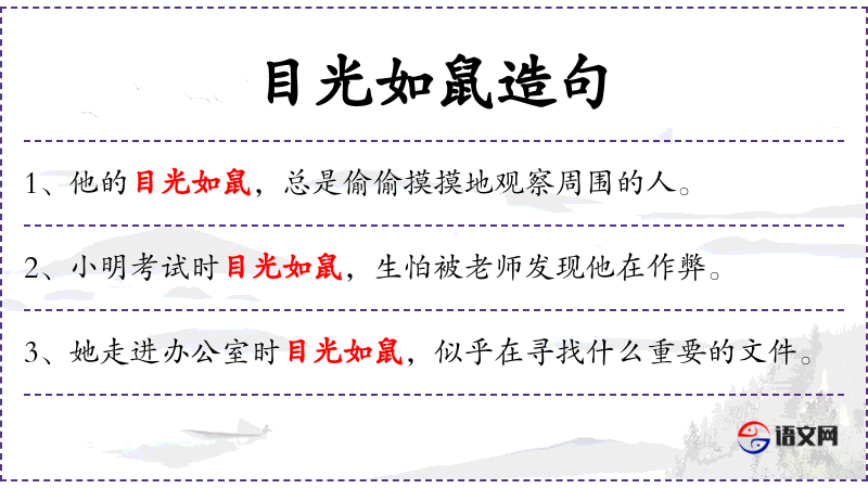1. 【目光如鼠】 - 鼠目寸光,形容目光短浅或行为不正。