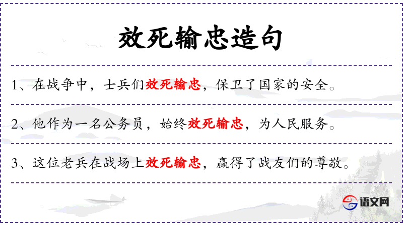 - 效死输忠:形容词,意为忠诚至死,愿意为职责或信念牺牲生命。