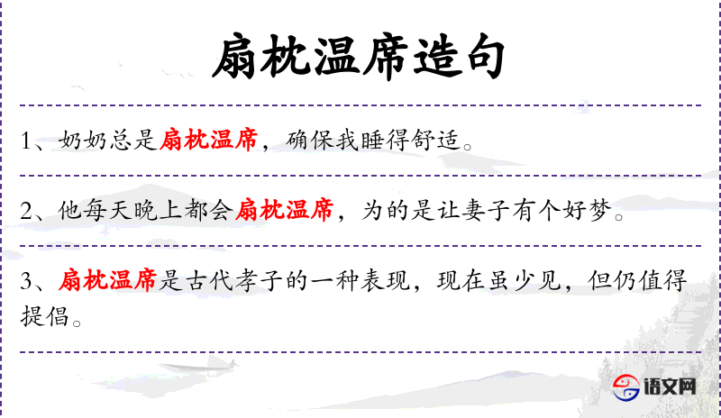 - 为了确保孩子们有一个舒适的夜晚,他细心地扇枕温席。