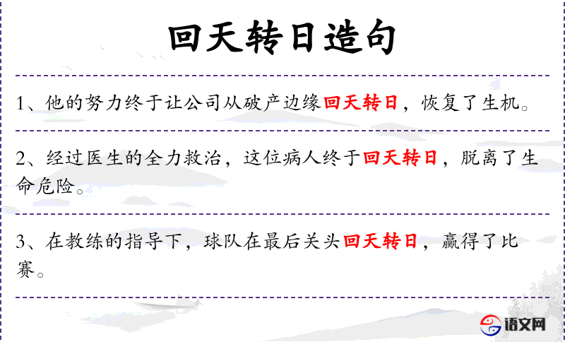 - 回天转日:成语,形容事情发生了极大的转变,通常指从不利转为有利。