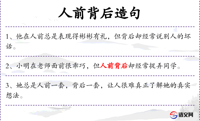 1. 【人前背后】 当着人背着人。当面一套背后一套。
