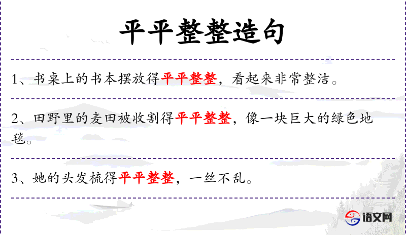 1. 【平平整整】 指平坦整齐。