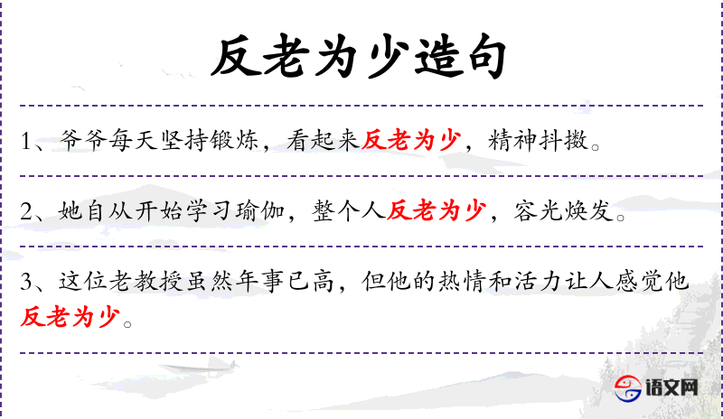- 反老为少:比喻身体状况变得年轻。