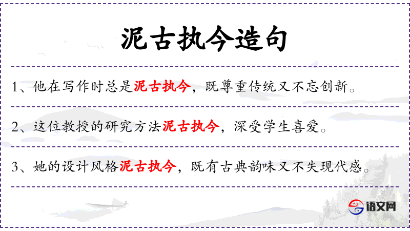 2. 【泥古执今】 - 泥:拘泥;执:执拘,约束限制。比喻用古代的陈规硬套今天的事物。