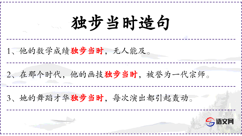 5. 【独步当时】 - 形容非常突出,一个时期内没有人能比得上。