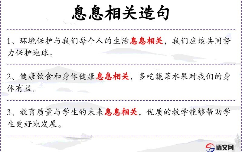 5. 【息息相关】 息:呼吸时进出的气。呼吸也相互关联。形容彼此的关系非常密切。