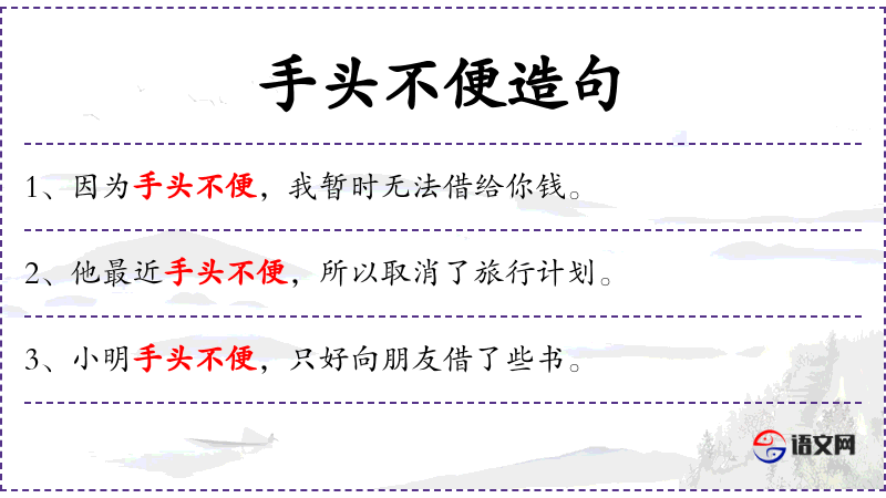 - 手头不便:表示经济状况不佳,没有足够的钱或资源。