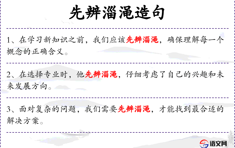 - 辨淄渑:to distinguish between Zi and Mian, metaphorically meaning to make a clear distinction or choice