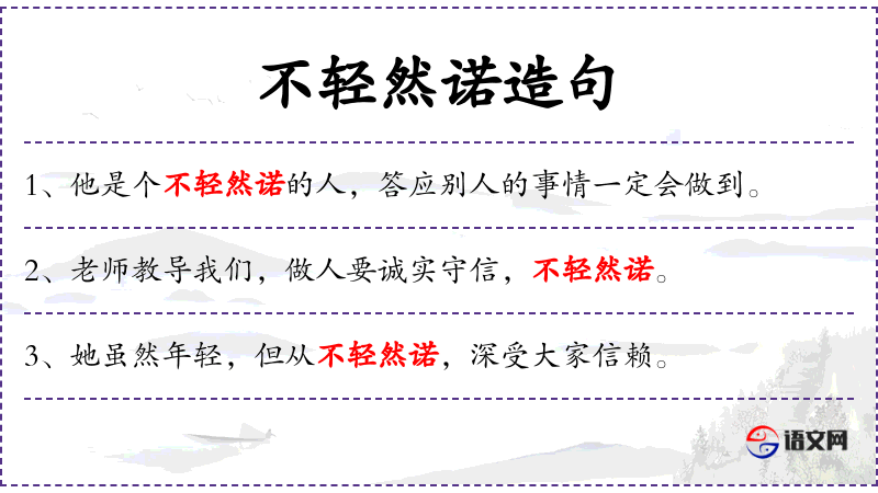 轻:轻易;然诺:许诺。不随便许诺什么。形容处事谨慎。也形容人守信用。