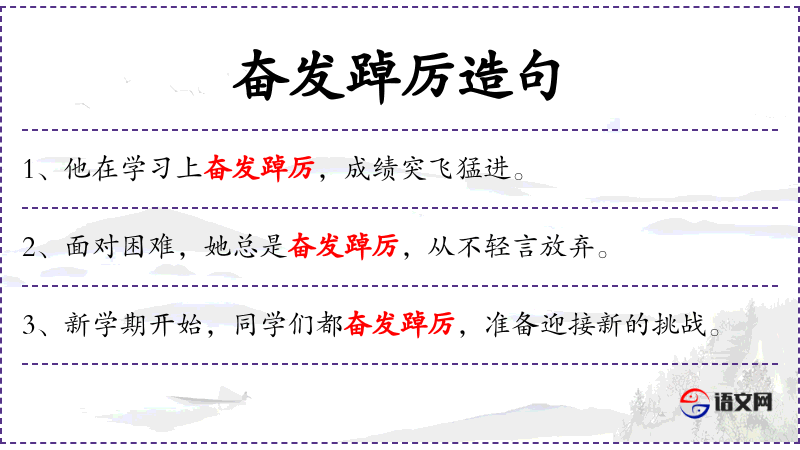 - 奋发踔厉:成语,形容精神振奋,行动迅速有力。