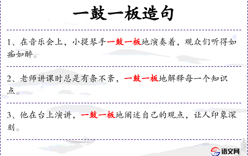 - 一鼓一板:成语,形容做事有条不紊,按部就班。