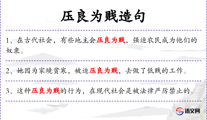 - 压良为贱:这是一个成语,意思是把好人逼成坏人,或者把有价值的东西贬低为无价值的东西。