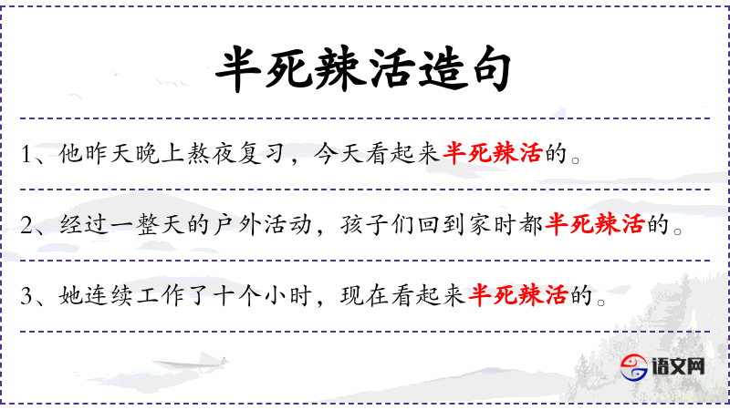 - 补语:半死辣活的