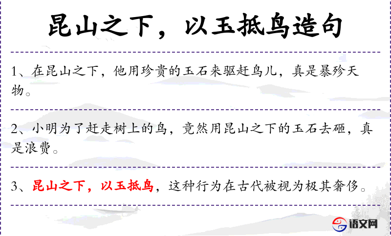 - 他竟然在昆山之下用玉石来驱赶鸟儿,以证明自己的财富。
