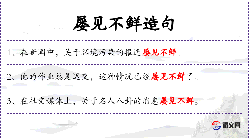 - 相关成语:屡见不鲜、司空见惯。