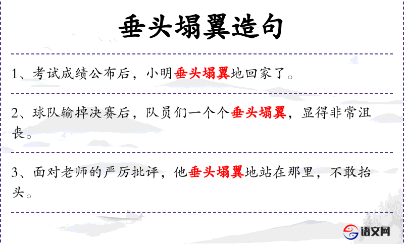- 成语、典故:“垂头塌翼”这个表达形象地描绘了失败后的心理状态。