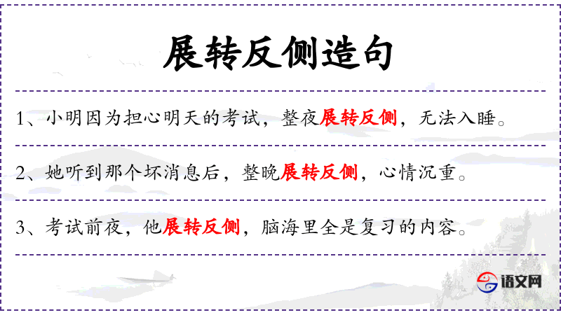 - 相关成语:展转反侧(形容因忧虑而难以入睡)